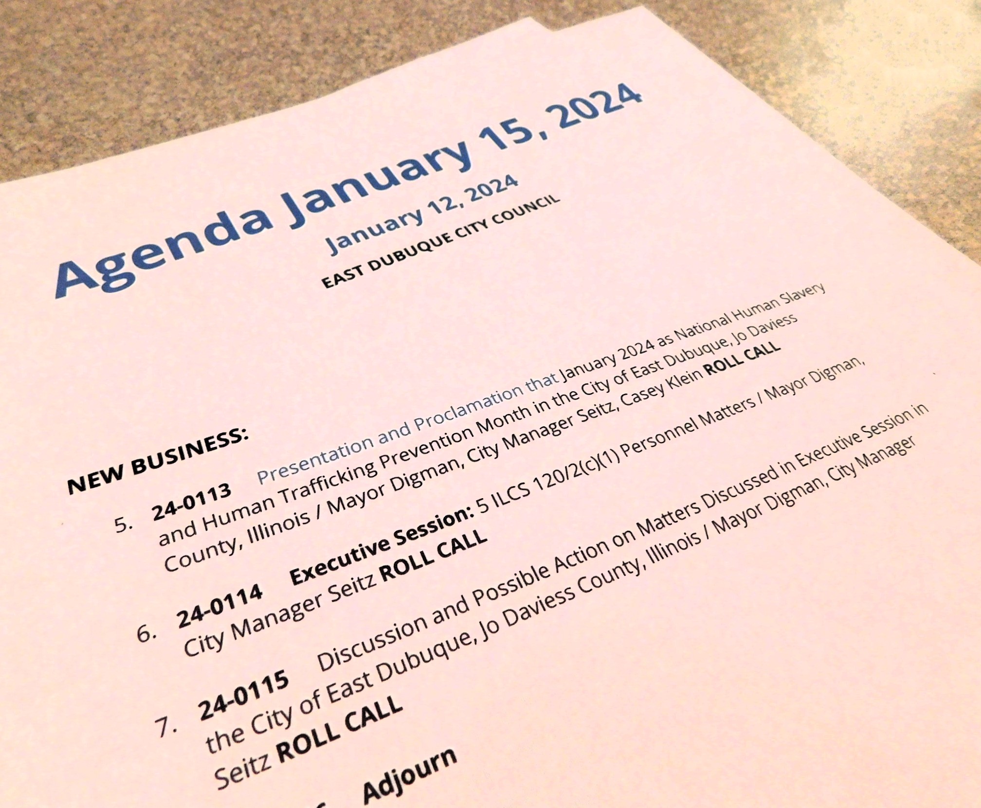 East Dubuque Mayor John Digman signed a proclamation on January 15, 2024, recognizing January 11th as National Human Trafficking Awareness Day. In this proclamation, Mayor Digman also declared January as Human Trafficking Prevention month.